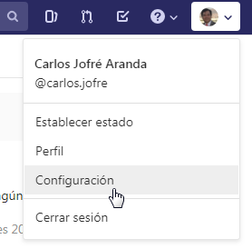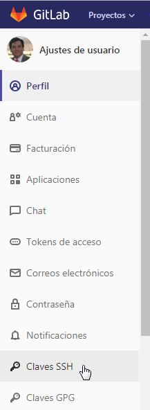 En Gitlab, acceda a la esquina superior derecha a la opción configuración de su perfil