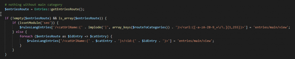 También debe modificarse la identificación de urls para las entradas de una categoría